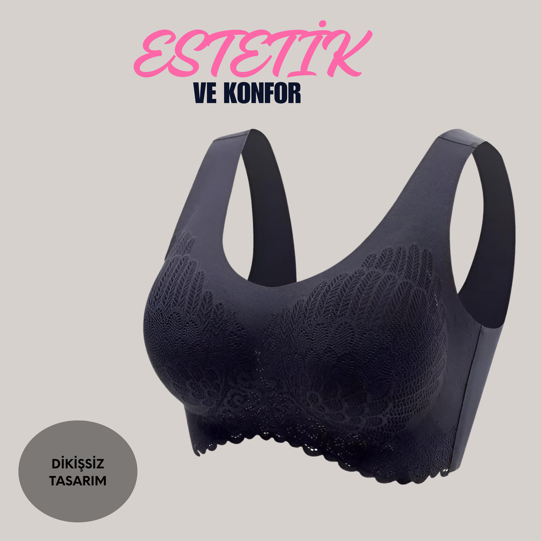 Dantel Görünümlü Dikişsiz Pedli Ultra Konforlu Sütyen