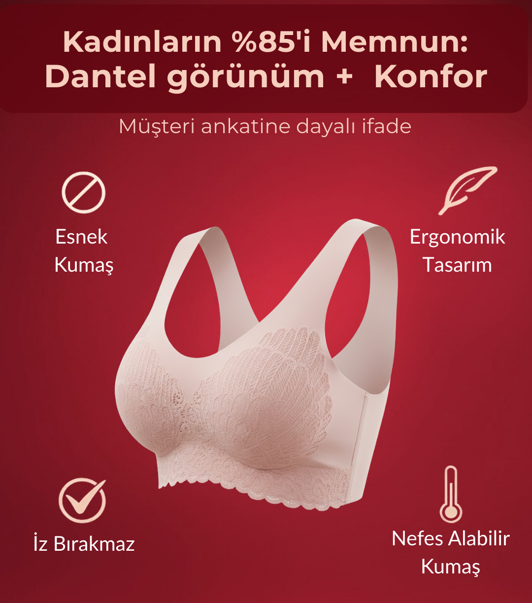 ✔️ Dikişsiz tasarımı sayesinde kıyafet altında iz yapmaz, pürüzsüz bir görünüm sunar. ✔️ Satenin zarif...